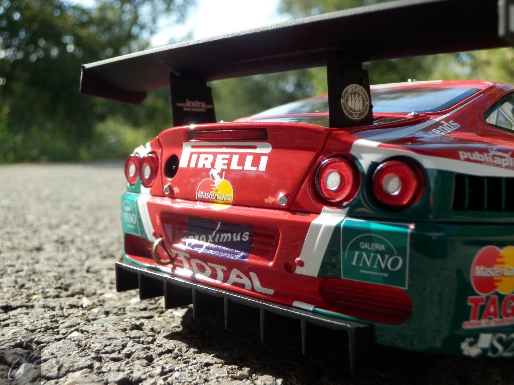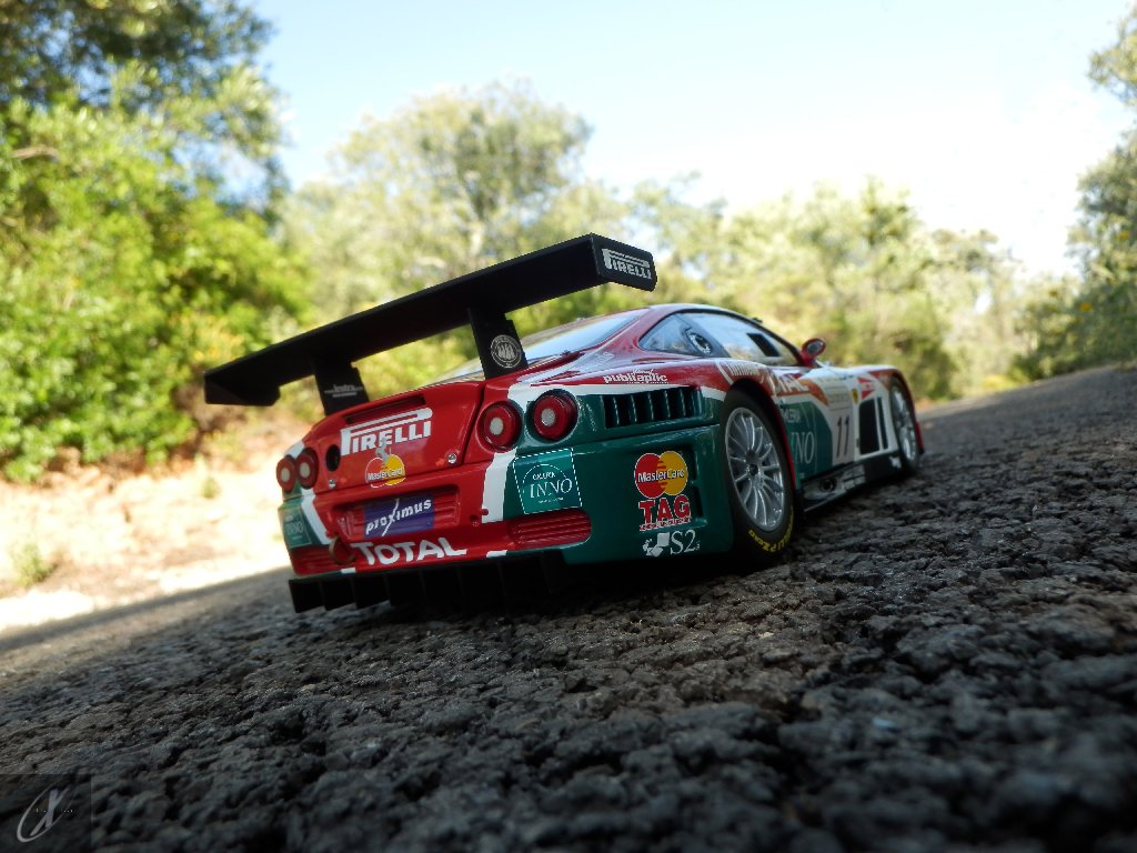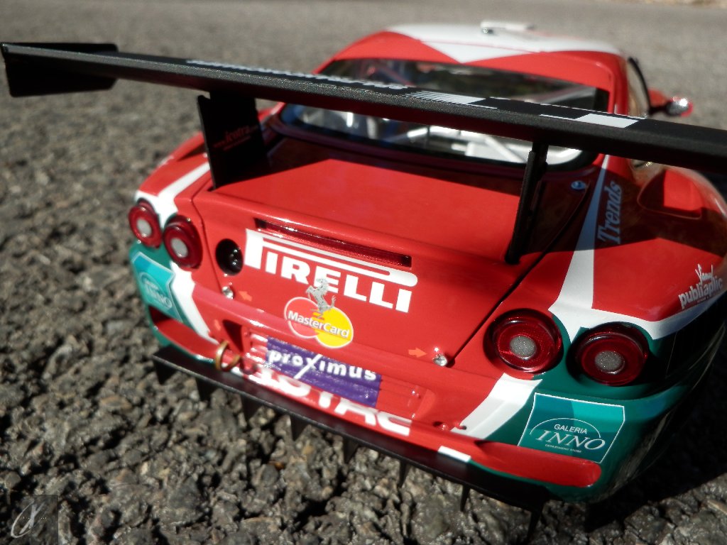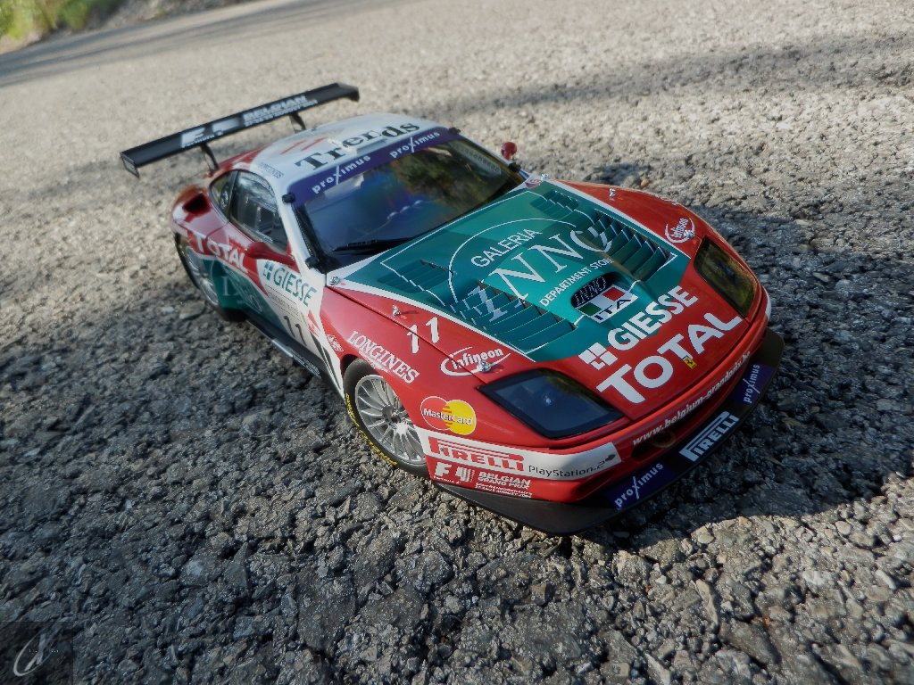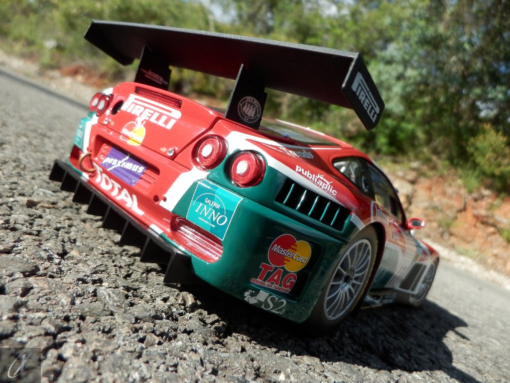 Ao ver o sucesso da Prodrive com a base 550, e com a recente apresentação da revisão do seu topo-de-gama, agora renomeado de 575M Maranello (575 respeitante ao aumento da cilindrada de 5474 cc para 5748 cc e M para "modificatta") e a produzir 515 cv de potência, a Ferrari viu aproveitou a oportunidade. Com o desenvolvimento em conjunto com a italiana N.Technology (então responsável pelo ganhador Alfa Romeo 156 GTA do ETCC) e a Ferrari Corse Clienti, produziram em 2003 dois chassis em muito semelhantes aos 550 GT da Italtechnica (#2102 e 2104), que foram entregues à equipa monegasca JMB Racing. Mas se o a base Italtechnica foi usada como comparação para o novo 550 GTC (que ainda hoje não está listado no site da Ferrari como um carro "oficial"), o certo é que não era fiável. Só mesmo no fim do ano, quando a N.Technology conseguiu terminar 2 unidades já na configuração 575 GTC é que a JMB conseguiu ganhar uma corrida, no Estoril! Assim, em 2004 duas equipas utilizavam o novo 575 GTC (que na verdade usava uma versão alargada do V12 a 65º, o F133 GT com 5997 cc que debitava 605 cv às 6300 rpm - mais 60 cv sem os restritores de admissão - e 730 Nm às 5200 rpm, que transmitia às rodas traseiras através duma caixa sequencial Xtrac de 6 velocidades)... e ainda assim continuavam a ser batidos pelo carro de 3 anos da Prodrive! A BMS Scuderia Italia voltou a ganhar o Campeonato FIA GT enquanto a Prodrive ganhou a classe em Le Mans e só na 6ª corrida da época o 575 GTC da JMB Racing conseguiu vencer a 1ª corrida, em Donington Park. Depois disso o chassis #2218 da G.P.C. Giesse Squadra Corse viria a estar bem próximo de ganhar de novo nas 24 h de Spa (que é a representação do carro que vos trago) mas... ficaria por 2º. Este seria o lugar em que a G.P.C. Giesse Squadra Corse acabaria o campeonato... atrás da Prodrive!