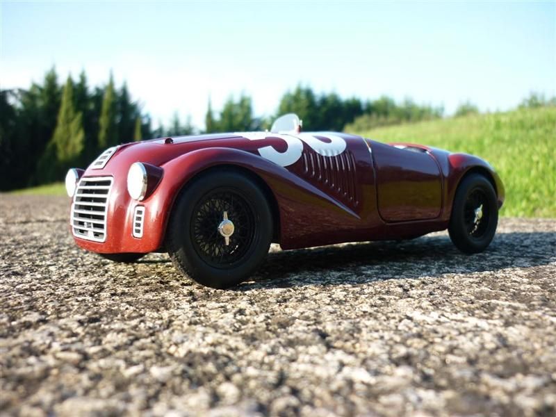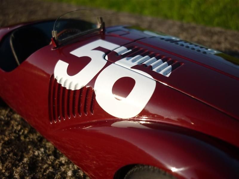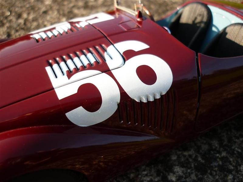 A história destes carros é-me um bocado incognita, fala-se muita coisa e nem sempre se entende o que se passou de verdade, o que eu sei é que se fizeram somente dois carros destes 01c e 02c (e corrijam-me se estiver enganado) e entretanto como até já comentou, salvo erro, o Joao, nenhum deles resistiu ao tempos e entretanto fizeram esta reprodução que faz parte da casa Ferrari, as competições em que eles participaram eu penso que foram GP piacenza, GP de Roma (1ª vitória), Circuito de Vercelli, Mille Miglia, Circuito de Parma, Firenze, e de Montenero Circuito em Livorno. Quantos aos numeros, sinceramente desconheço a numerologia de cada prova, penso que este #56 será da prova de Piacenza e existe o #128 que terá sido o do GP de Roma. Aguardo por quem faça correcções ou acrescentre mais da história.