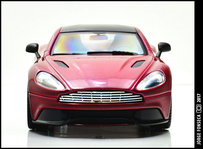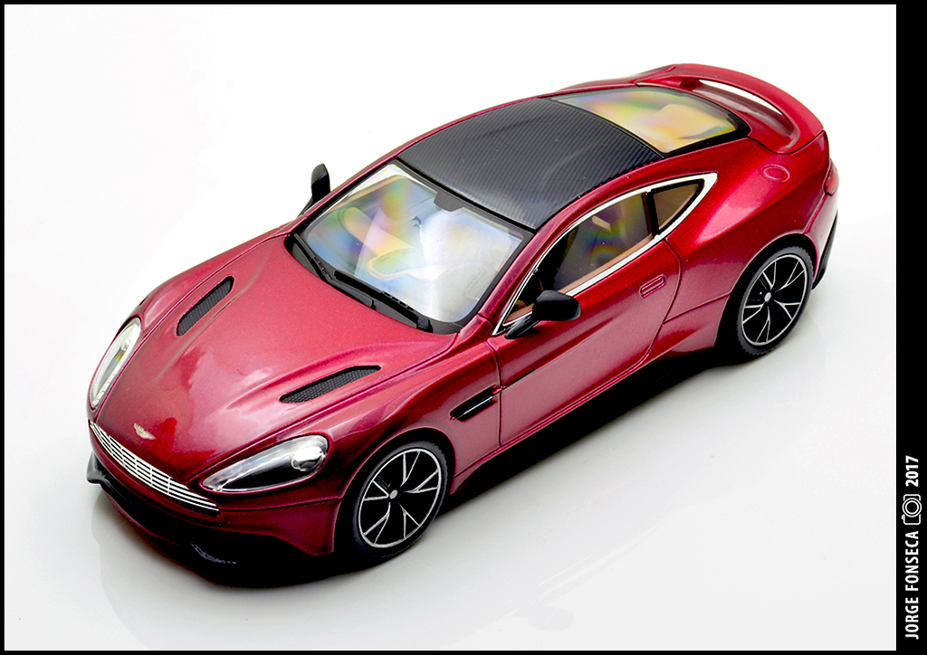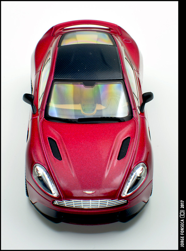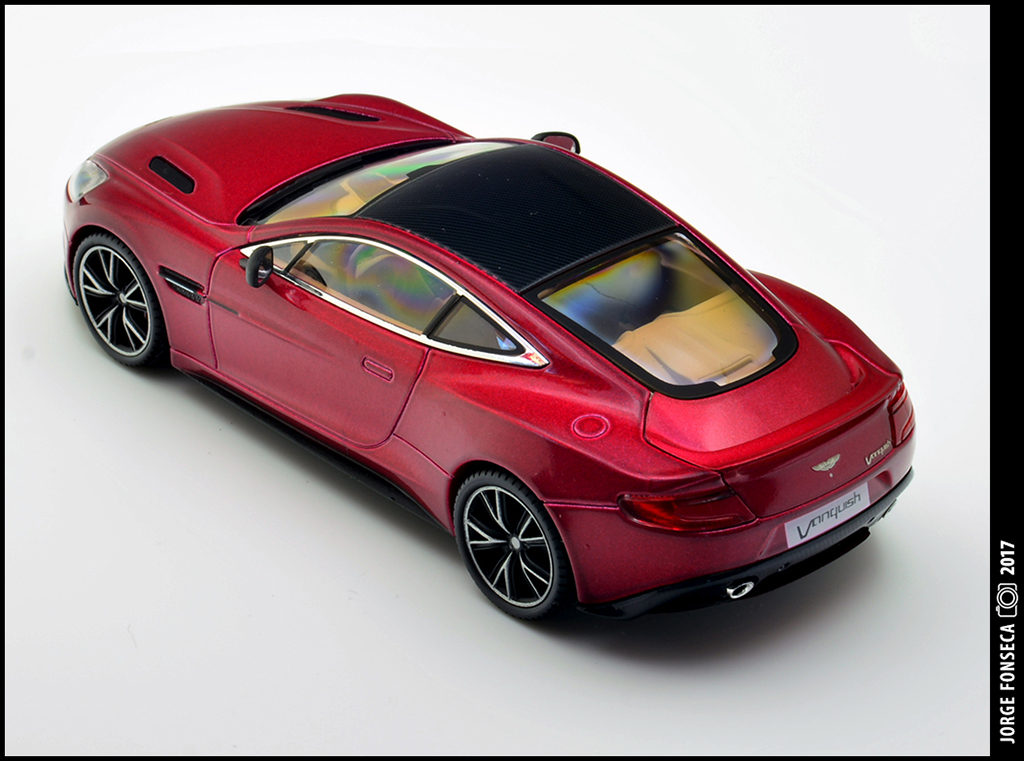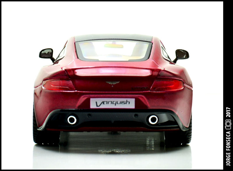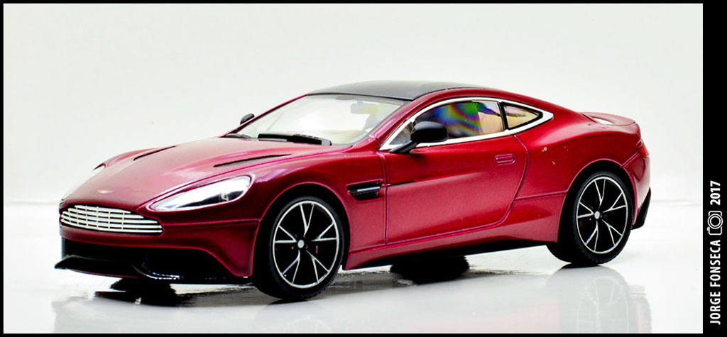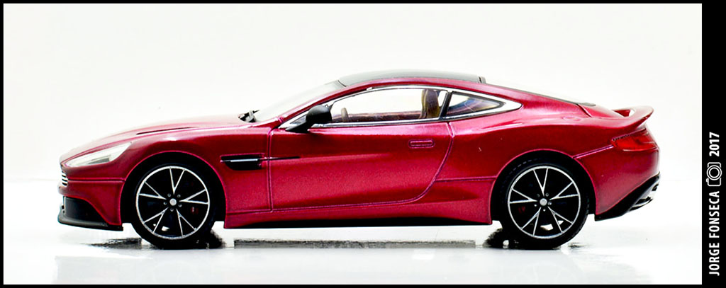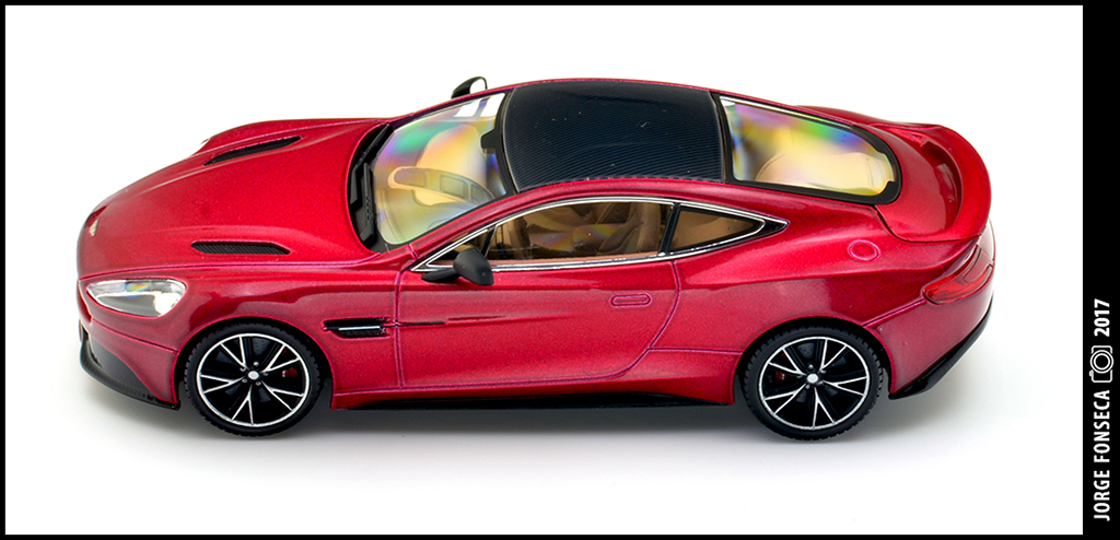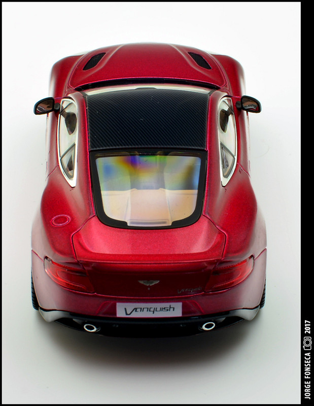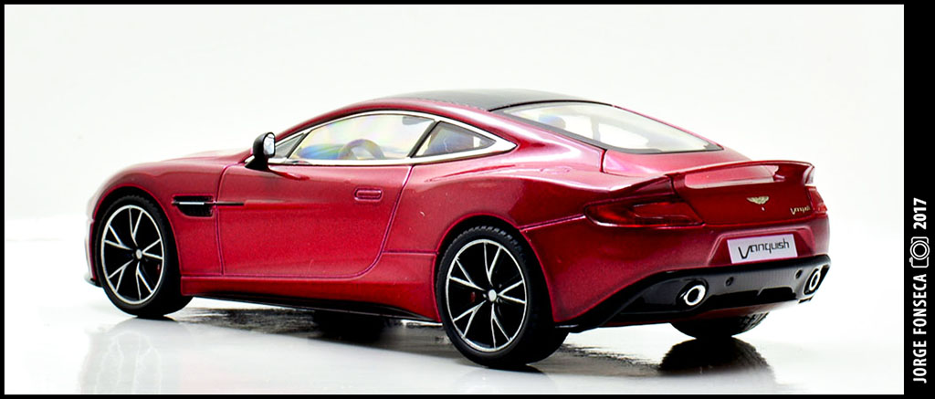 Sempre fui muito fã do Vanquish. E este está fantástico, como tal, gosto muito do modelo. A Kyosho esmerou-se e deu a miniatura realidade. Está perfeito. Impecável. Tudo no sitio certo. A cor, apesar de não ser fã de vermelho (tolero mais facilmente na marca do cavalinho) este metalizado, praticamente sem granulado à vista desarmada, dá à miniatura um aspecto absolutamente espectacular.