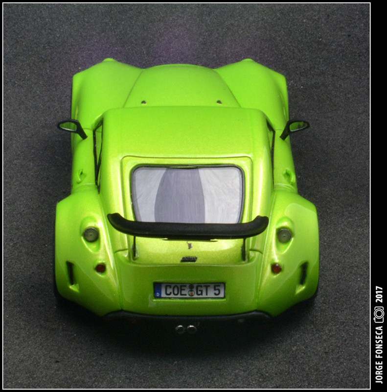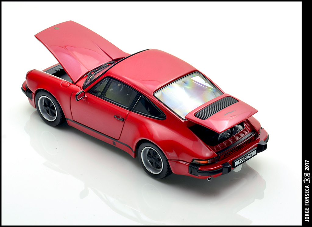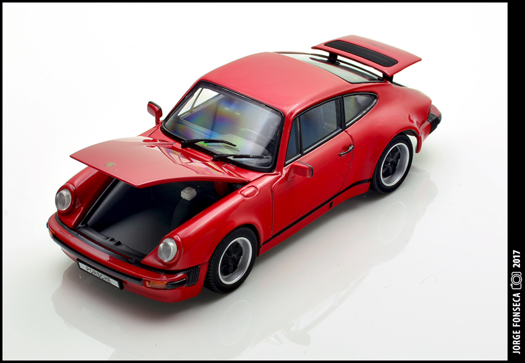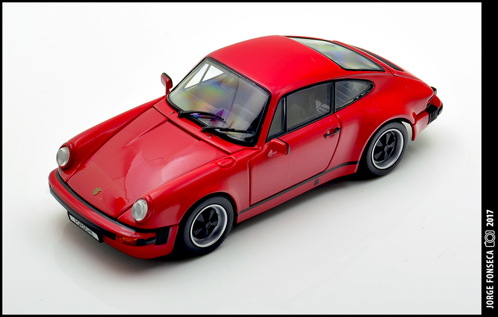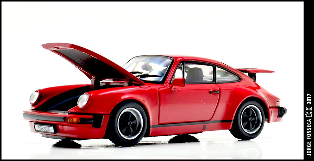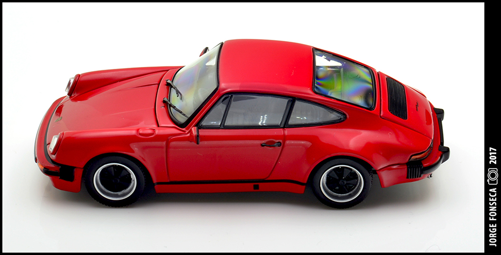 Não sou, nem de longe nem de perto, um fã destes recentes Porsche da Kyosho, principalmente quanto ao molde.Não obstante, não deixam de ser boas miniaturas, com a mais valia de aberturas.Este, por sinal, está bem bonito, numa cor que lhe assenta super bem.